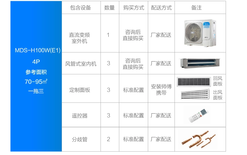 美的 一拖三變頻一級能效 多聯風管機 4匹 家用中央空調 MDS-H100W(E1)
