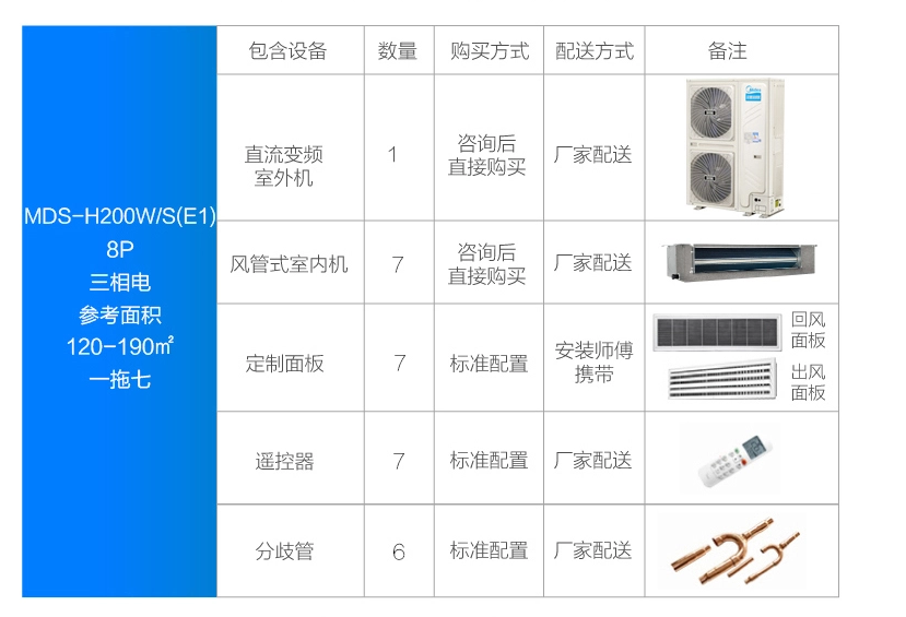 美的 一拖七變頻一級能效 多聯風管機 8匹 家用中央空調 MDS-H200W/S(E1)